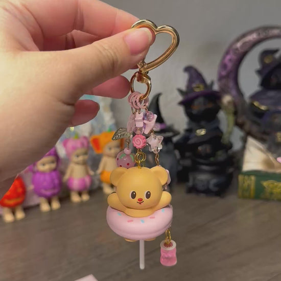 Butterbear Doughnut Keychain | Authentic Bear Figure Bag Charm | Pink Kawaii Accessory