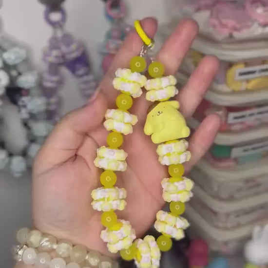 Pompompurin Phone Strap | Phone Chain | Keychain | Sanrio Yellow Dog | Wirstlet | Beaded Phone Strap | Beaded Phone Chain